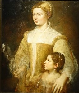 Milia met haar dochter Emilia. Terug ter plekke, onder de hoede van, en geschilderd door Titiaan.