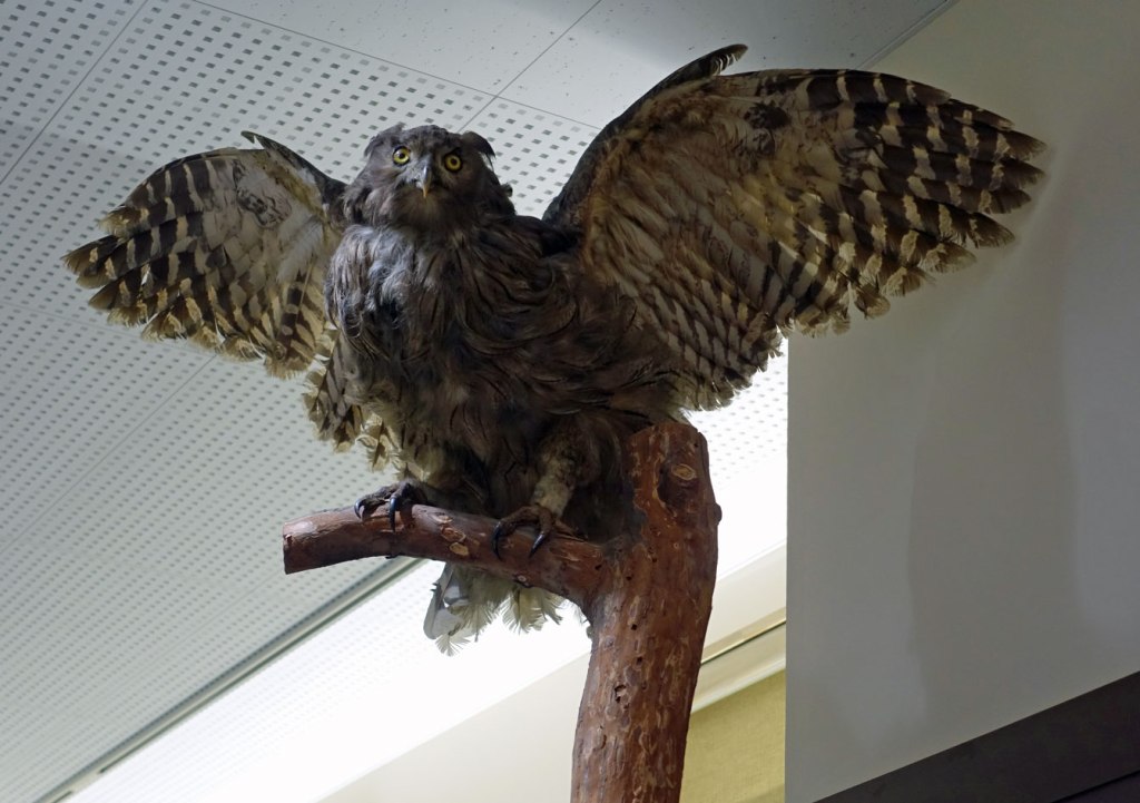 Zo ontspon zich een interessant gesprek in Ainu Kotan, letterlijk vertaald het dorp van de Ainu. Zwaar toeristisch, ik beschouw dat maar als een goed teken. Beter dan de verveloze, vervallen en zo vaak verrommelde nederzettingen die ik ben tegengekomen in de reservaten van de ‘Native Americans’ in de VS, of de ‘First Nations’ in Canada. Ga iets doen! Mij lijkt dat je de Ainu daar niet toe hoeft aan te sporen. Natuurlijk, ik heb een betekenisvol souvenir bij hen gekocht. Een handgemaakte, houten ‘Blakiston’s visuil’. Thomas Blakiston (1832) is trouwens een buitengewoon fascinerende, Britse ontdekkingsreiziger, die heeft vastgesteld dat Hokkaido een geheel andere fauna heeft dan de rest van Japan. Zoals onze visuil, die wel voorkomt in het verre oosten van Azië maar niet in de rest van Japan.